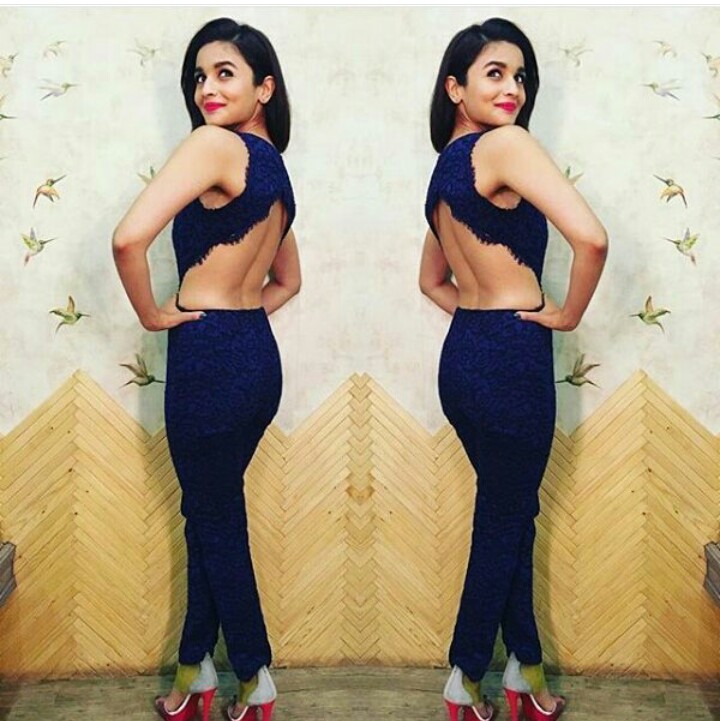 Alia Bhatt In Jumpsuit : She looks quite cute in that blue jumpsuit paired with pink heels and pink lips.