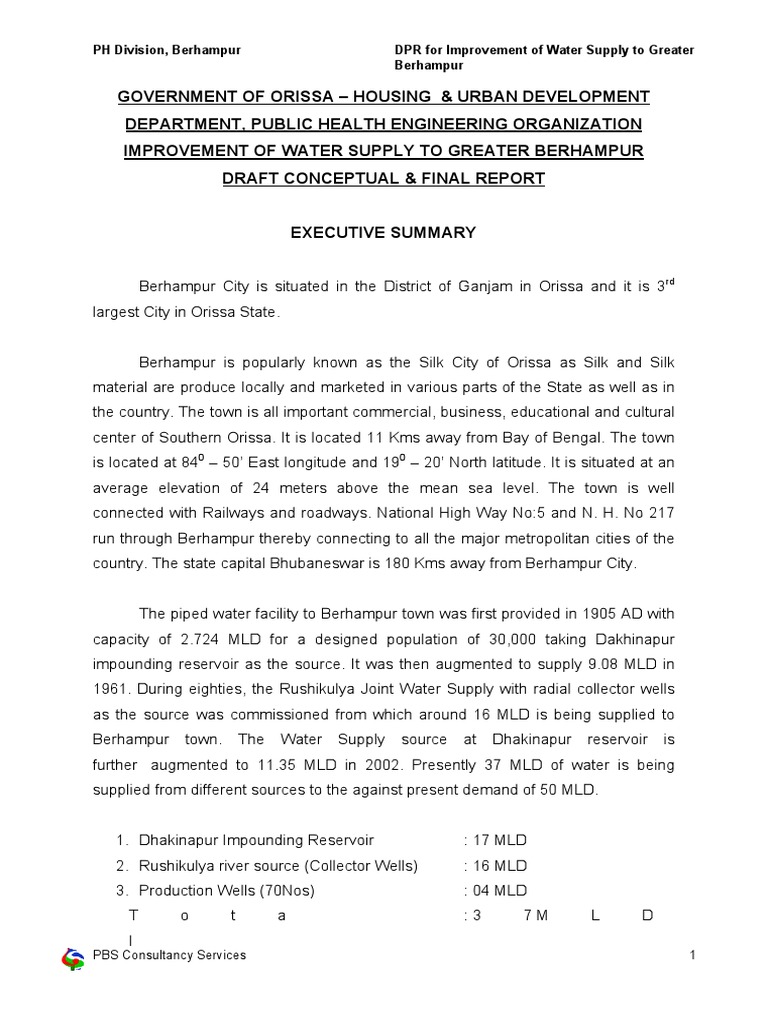Berhampur Water Supply : The city is at 19° 20' n latitude 84° 50' e longitude.