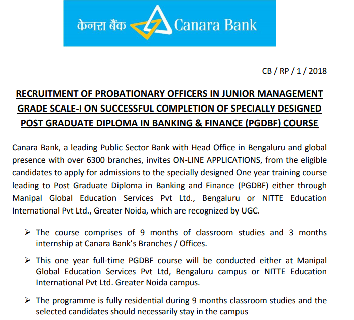 Canara Bank Recruitment Notification - Candidates applied for the exam can download their canara bank jobs notification: