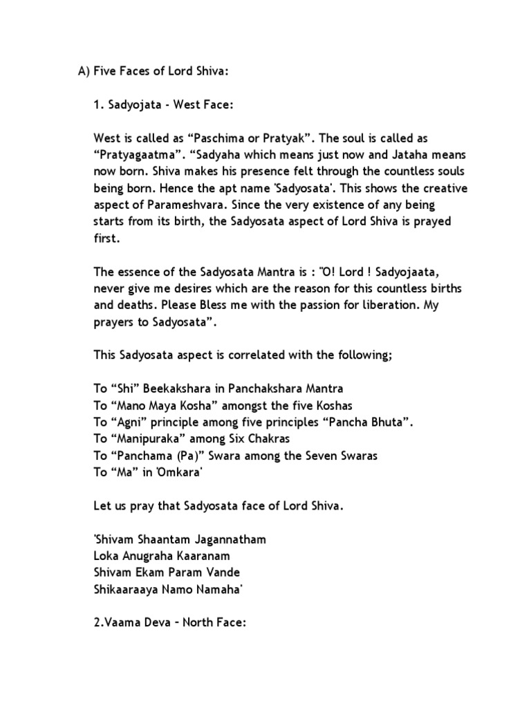 Five Faces Of Lord Shiva - These five faces represent the five different forms of lord shiva.