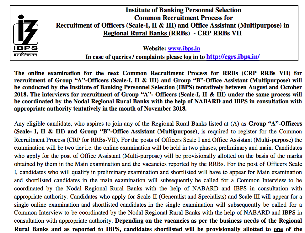 Ibps Rrb 2018 Notification : On 30th june official ibps rrb notification pdf released on the official webpage.