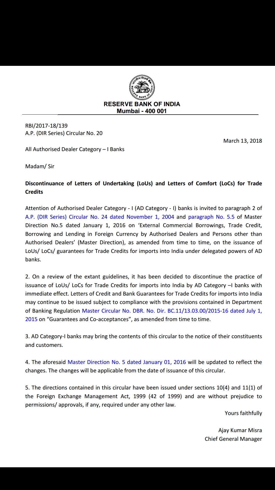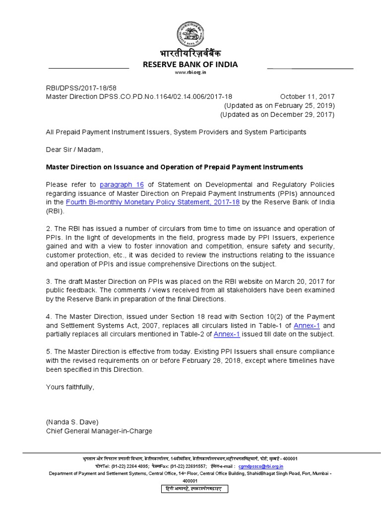Master Circular On Foreign Investment In India Rbi Website According to an rbi circular, the cco should be appointed for a minimum fixed period of three years in the rank of a general manager or not below two levels of the rank of ceo.