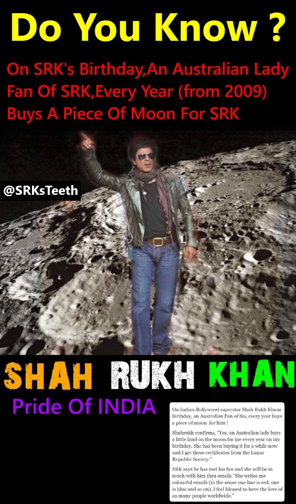 Shahrukh Khan Property On Moon / He married gauri khan on 25 october 1991.