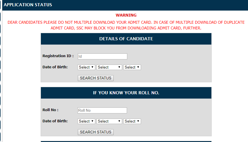 Ssc Admit Card 2018 Download : Status of admit card available.